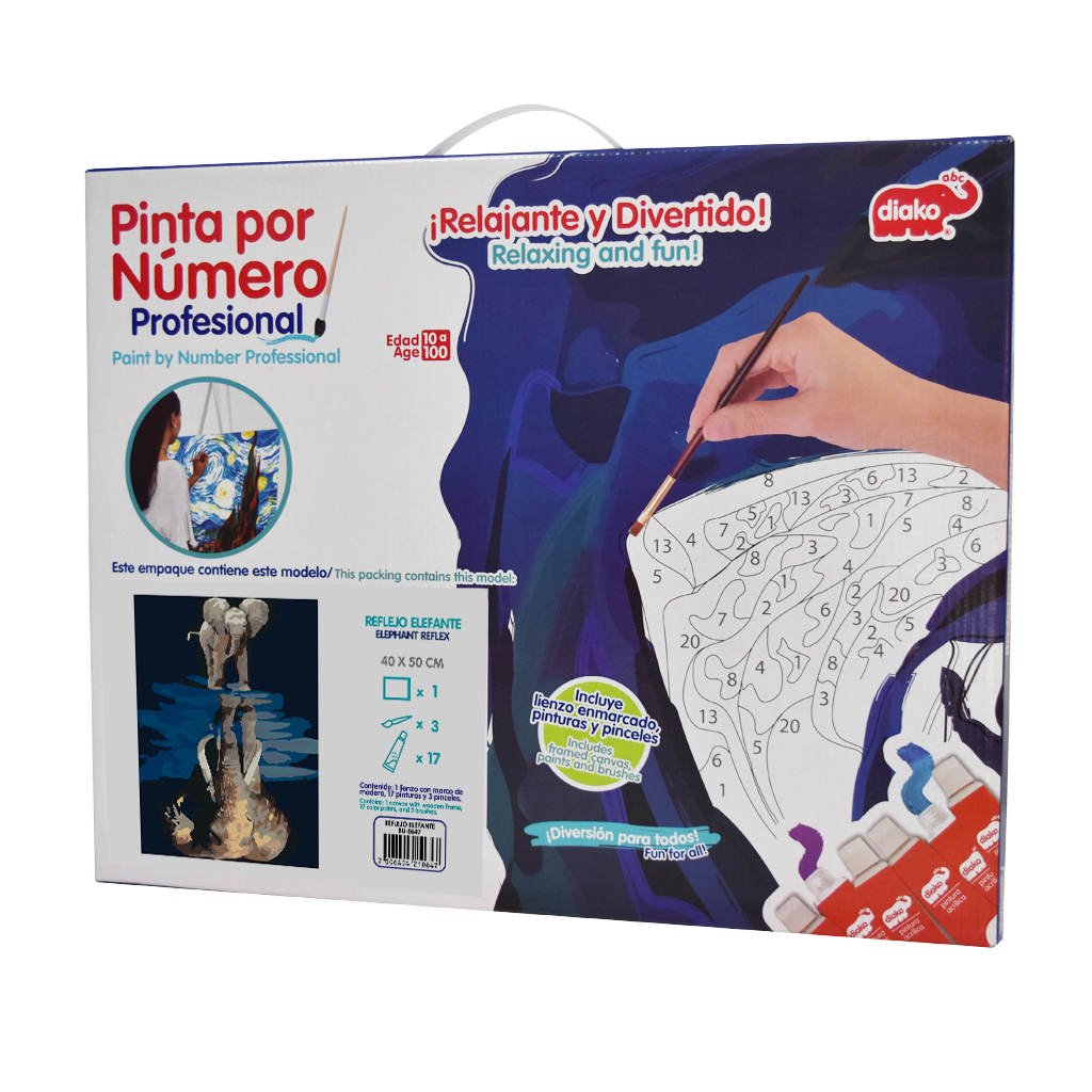 El tiempo de creatividad reduce el estrés, relaja la mente y el cuerpo, además de ser divertido. Pinta por número profesional contiene un lienzo en marco de madera, pinturas numeradas, paleta de pintor, 3 pinceles, bolsa de manta guarda fácil, instructivo y tips para pintar como profesional. ¡Con pinta por número crea obras de arte en forma sencilla! Simplemente haz coincidir el número de la pintura con el impreso en el lienzo y rellénalo. Medidas: 40x50 cm