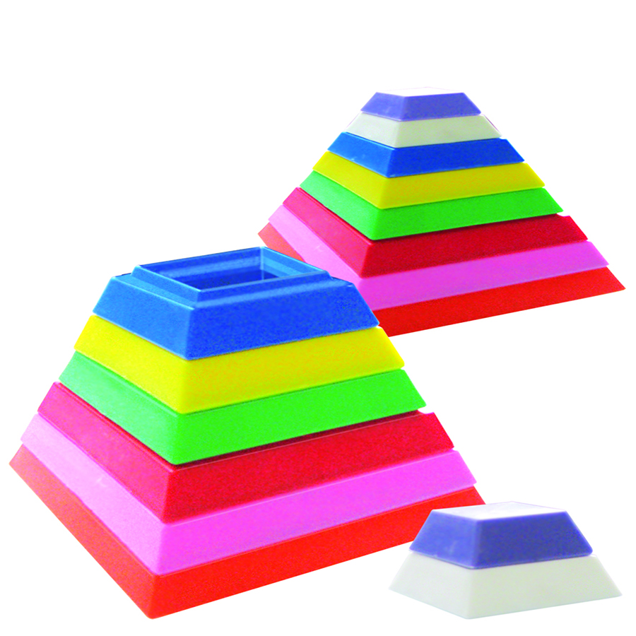 Juego apilable de brillantes colores fabricado en plástico 100% , 8 piezas encajables que se apilan en secuencia descendente, el diseño es seguro para niños pequeños colores ( naranja, rosa, blanco, amarillo, morado, verde, azul, rojo ) Tamaño: 14 x 14 x 15.5 cm edad: 2 a 8 años .