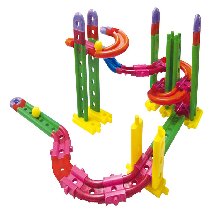 Material de psicomotricidad fina, ubicación espacial, reconocimiento de forma y geometría adecuado para el juego en conjunto ya que al armarse en todas sus modalidades se forman diferentes direcciones de una pista recorrida por una esfera que es la parte móvil del juego además de patrones determinados en su instructivo Presentación: bolsa de vinil, Tamaño Aprox. 28cm, 18cm, 5 x 6 cm de ancho y 2 cm de grosor nivel preescolar, primaria y secundaria. 80 Piezas