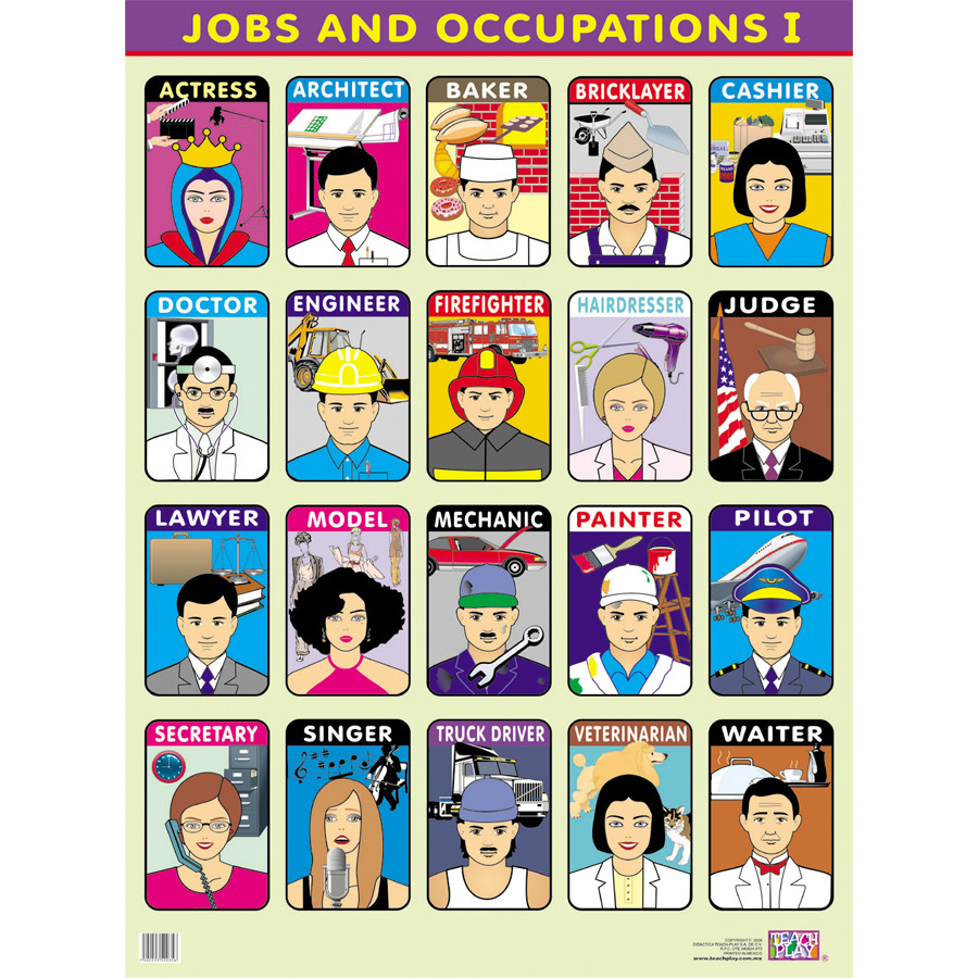 Poster plastificado de las principales profesiones y oficios en inglés. excelente material didáctico en inglés para el salón de clases Contenido: 1 pieza. Tamaño Aproximado: 70x95x1 cm.