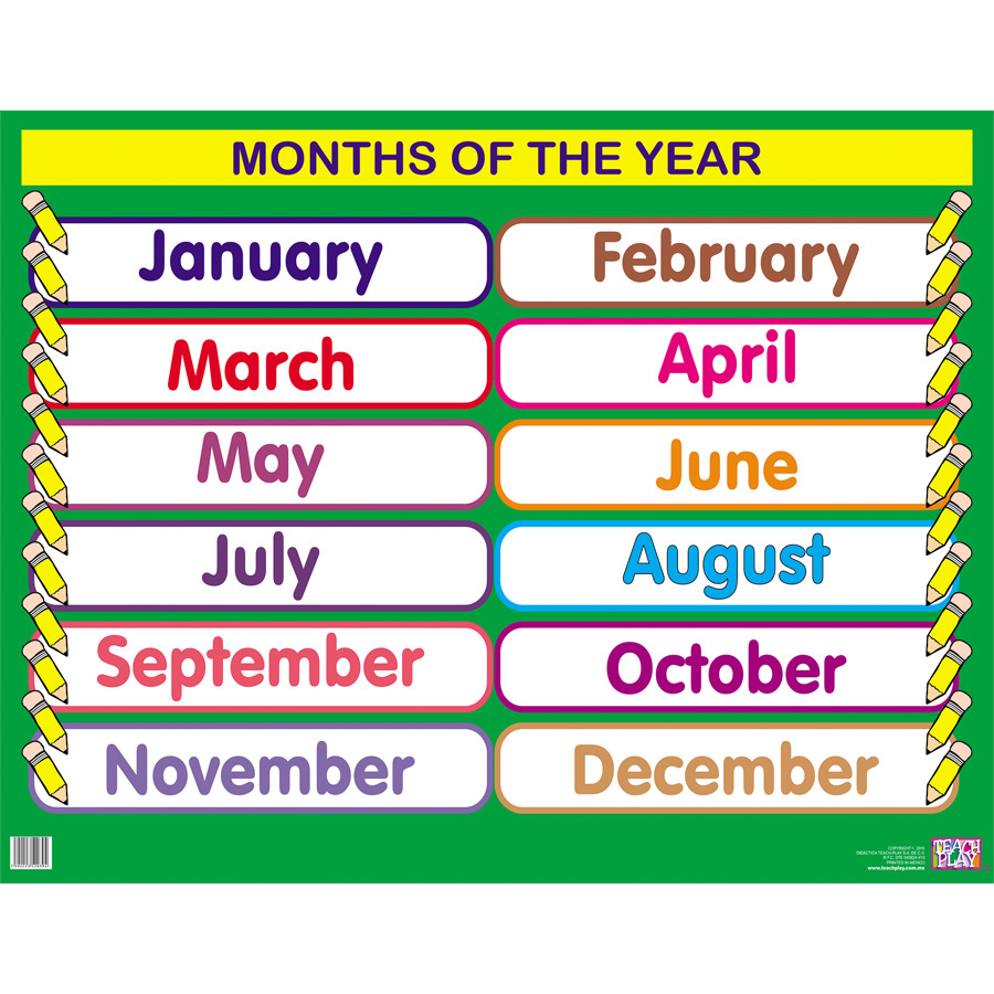 Poster plastificado de los meses del año en inglés. excelente material didáctico para enseñar los meses del año en inglés. Contenido: 1 pieza. Tamaño Aproximado: 70x95x1 cm.