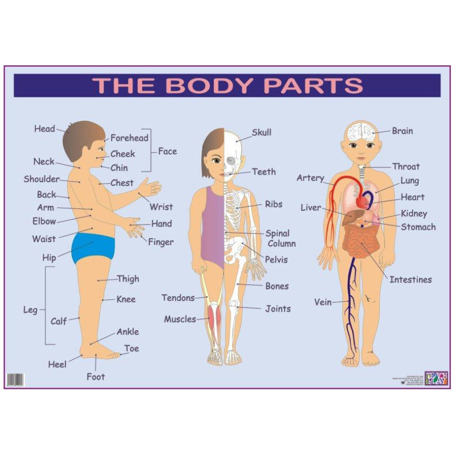 Poster plastificado de las partes del cuerpo en inglés. excelente material didáctico en inglés para el salón de clases Contenido: 1 pieza. Tamaño Aproximado: 70x95x1 cm.