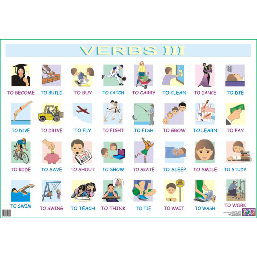 Poster plastificado de verbos en inglés. excelente material didáctico en inglés para el salón de clases Contenido: 1 pieza. Tamaño Aproximado: 70x95x1 cm.