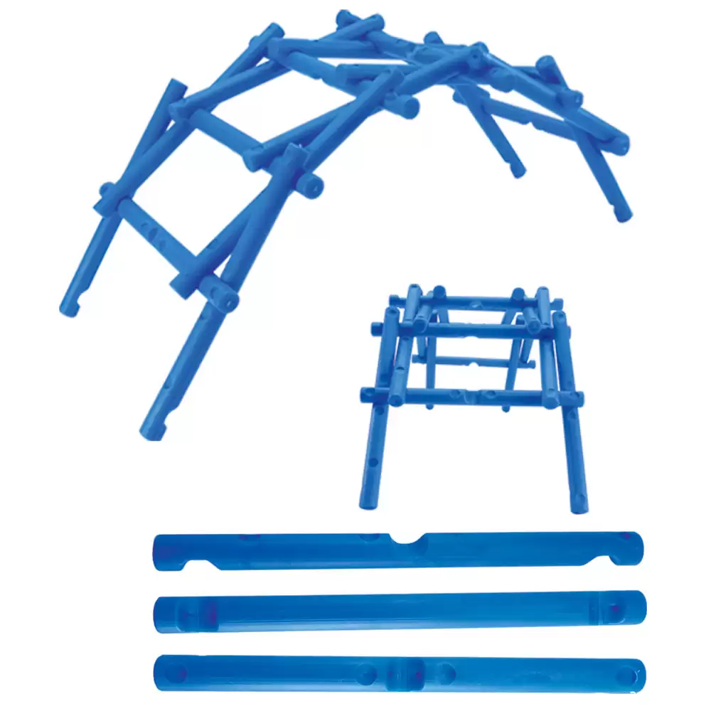 Entre los numerosos diseños realizados por Leonardo da Vinci, destacan los puentes. Este estudio analiza una estructura autoportante, sumamente liviana y fuerte, fácil de montar y desmontar, ya que se mantiene en pie gracias a su propio peso. Presentación: Caja de cartulina sulfatada con 20 piezas de 11 cm de largo x 8 mm de diámetro. Material: Plástico. Nivel: Preescolar - Primaria