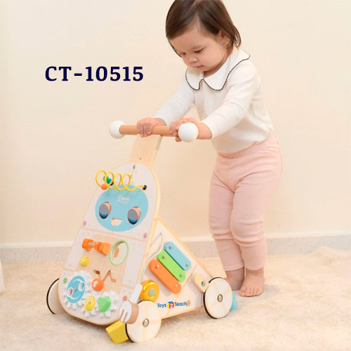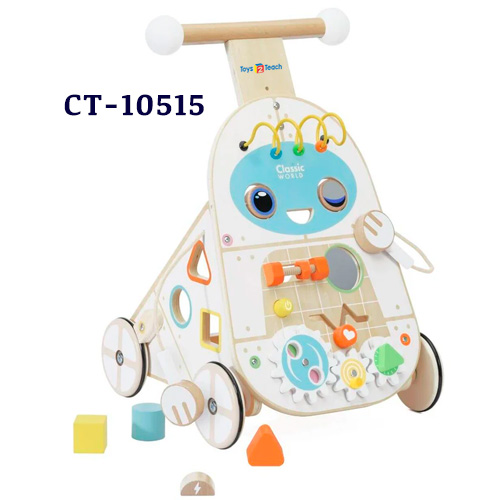 Medida 30.7 x 35.5 x 47.9 cm. Contenido: 5 Piezas. Vamos a recorrer grandes lugares con este Robot Caminante de madera. Tiene unos brazos articulados imantados y pueden colocarse en distintas posiciones, La altura del Robot es graduable e incluye un regulador de velocidad para que al caminar con el sea mas seguro, En sus distintas caras incluye diversas actividades: xilofono, encaje de formas, ruedas para girar, espejo. En la parte posterior tiene un compartimento para llevar objetos