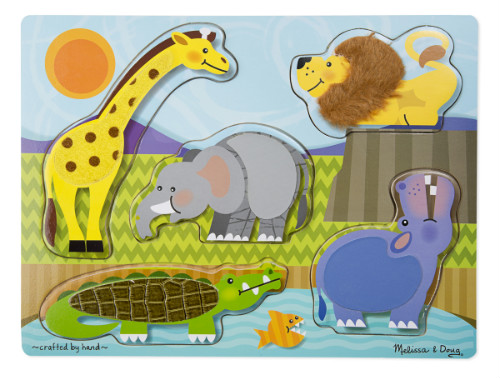Edad: +18 meses, el cocodrilo con escamas y el elefante con piel arrugada son sólo dos de las fascinantes experiencias táctiles en espera de la exploración por los pequeños dedos. este rompecabezas de madera de 5 Piezas cuenta con piezas en forma de animales salvajes. cada pieza de este rompecabezas de madera ayudar a estimular la discriminación sensorial y el desarrollo de la coordinación ojo-mano.