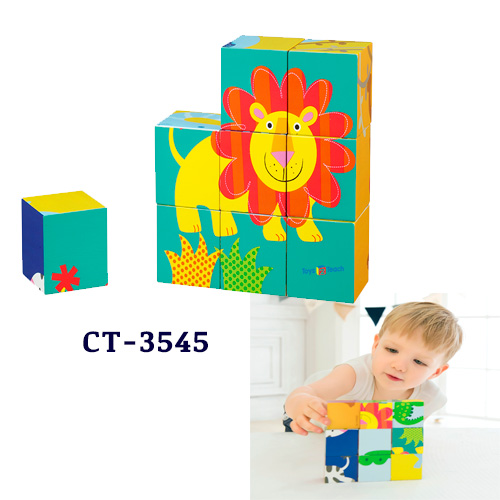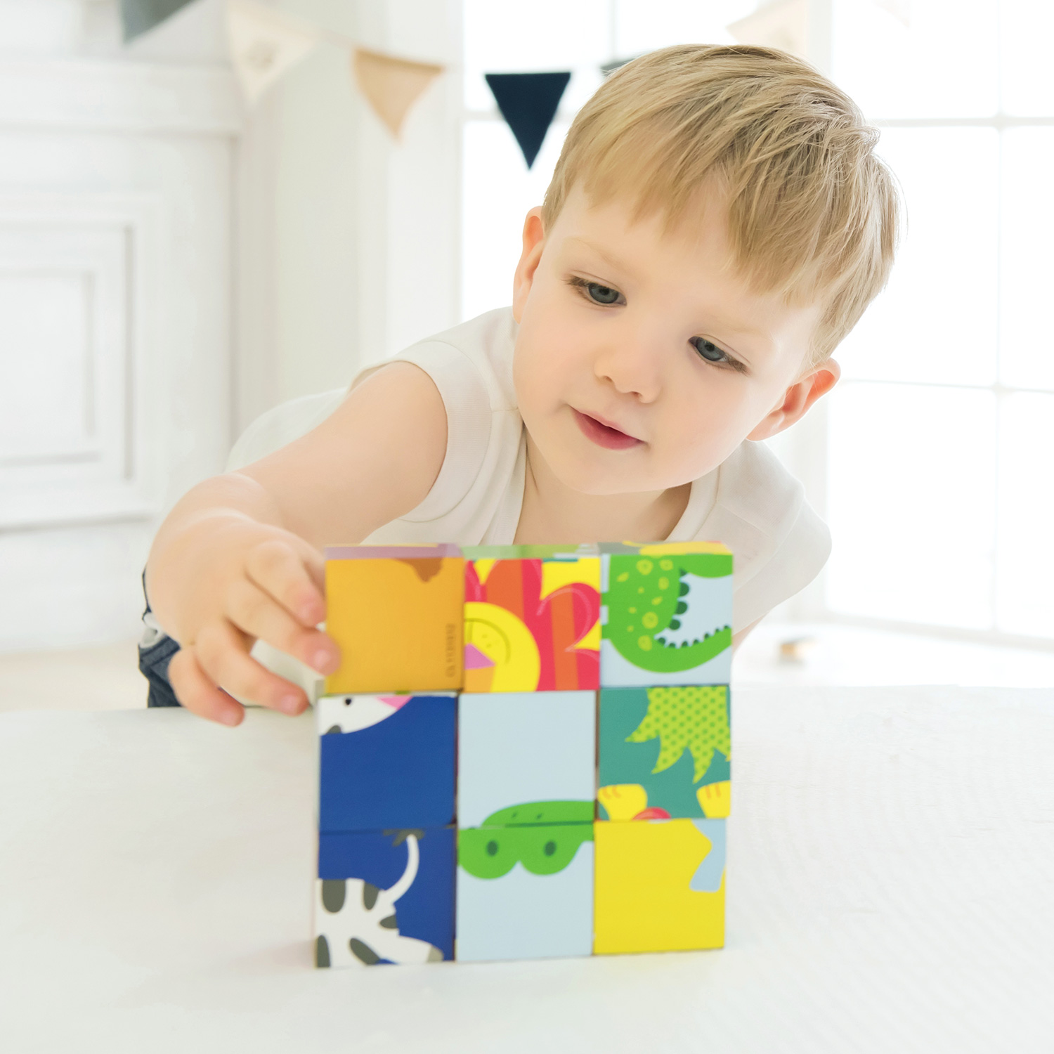 Contenido: 9 piezas. Medida 13.5 x 13.5 x 4.5 cm. ¡Encuentra los animales escondidos en este lindo juego de rompecabezas de bloques! Este juguete sera el encanto de los pequeños, atrapara su interes y la curiosidad armandolo muchas veces para ver a los diferentes animales. Los cubos estan pintados con varios patrones en cada lado, lo que hace que pueda cambiar la adorable imagen de los animales. Con este juego de rompecabezas de bloques, el niño practica la observacion, desarrolla habilidades de imaginacion espacial y mejora la coordinacion ojo-mano.
