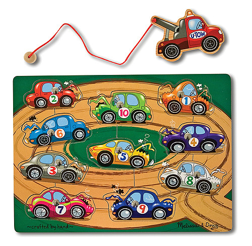 Edad: 3+, 10 Piezas rompecabezas magnético de madera. ¡llama a la grúa! esta es una obra de arte automotriz. primero remueve de su lugar a los 10 autos con el remolque magnético y luego disfruta del reto divertido de devolver los coches a sus lugares correctos! esta es una manera creativa de alentar la coordinación mano-ojo y el desarrollo de la motricidad fina.