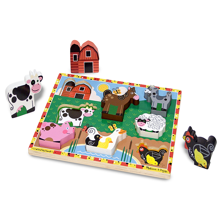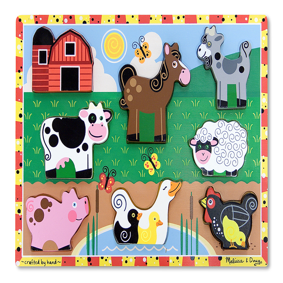 Edad: 2+piezas: 8Tamaño: 30.5 x 23 cms 8 piezas de rompecabezas de madera con animales de la granja las piezas se quedan de pie, para una mayor de madera gruesas de fáciles de agarre estimula la coordinación mano-ojo y la habilidad motora fina