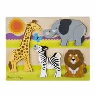 Rompecabezas de madera de piezas grandes con 4 animales salvajes y 20 piezas en total Cuenta con rompecabezas de una adorable jirafa, una cebra, un elefante y un león en un tablero de rompecabezas Tiene ilustraciones coincidentes debajo de las piezas del rompecabezas Ayuda a desarrollar las habilidades de conteo y motoras finas y el reconocimiento de animales y colores
