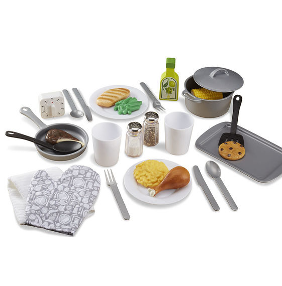 El tiempo de juego entrará en calor con este perfecto set complementario para jugar a cocinar. El set de 22 piezas incluye una olla con tapa, un sartén, una bandeja para galletas, una espátula, una cuchara de servir, 2 platos, 2 tazas, 2 tenedores, 2 cuchillos, 2 cucharas y un reloj de cocina, todo hecho de plástico duradero apto para el lavaplatos en el nivel superior. También hay salero y pimentero, una botella de aceite de oliva de madera, una toalla de cocina y un guante para horno. Cocineros en ciernes de 3 años en adelante serán capaces de cocinar y servir una diversión imaginativa por muchos años con este set de cocina con el tamaño ideal para niños. Set de 22 accesorios para cocina de juguete Incluye accesorios de plástico duradero como una olla, una bandeja para galletas, una espátula, una cuchara de servir, manteles individuales y un reloj de cocina También incluye salero y pimentero de madera, una botella de aceite de oliva de madera, una toalla de cocina y un guante para horno Es el set de accesorios perfecto para una cocina de juguete El tiempo de juego entrará en calor con este perfecto set complementario para jugar a cocinar. El set de 22 piezas incluye una olla con tapa, un sartén, una bandeja para galletas, una espátula, una cuchara de servir, 2 platos, 2 tazas, 2 tenedores, 2 cuchillos, 2 cucharas y un reloj de cocina, todo hecho de plástico duradero apto para el lavaplatos en el nivel superior. También hay salero y pimentero, una botella de aceite de oliva de madera, una toalla de cocina y un guante para horno. Cocineros en ciernes de 3 años en adelante serán capaces de cocinar y servir una diversión imaginativa por muchos años con este set de cocina con el tamaño ideal para niños.