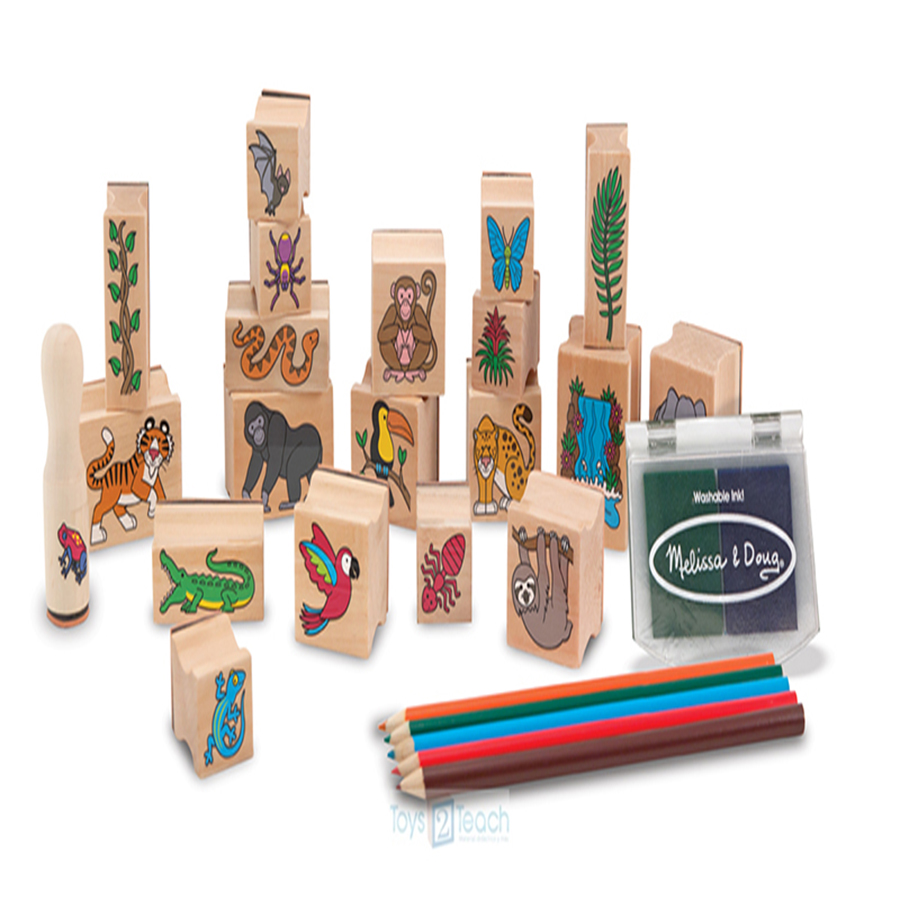 Edad: 4+, los sellos de los monos, serpientes, aves e insectos se combinan para crear esa selva que hay en tu imaginación! este conjunto de sellos extra-grande hace que sea fácil para los niños crear una historia emocionante o una escena llena de color : Incluye 20 sellos de caucho, con mango de madera, un cojan y dos colores de tinta lavable azul y verde. cinco lápices de colores combinan con el tema de la selva para añadir detalles y el color en la escena.