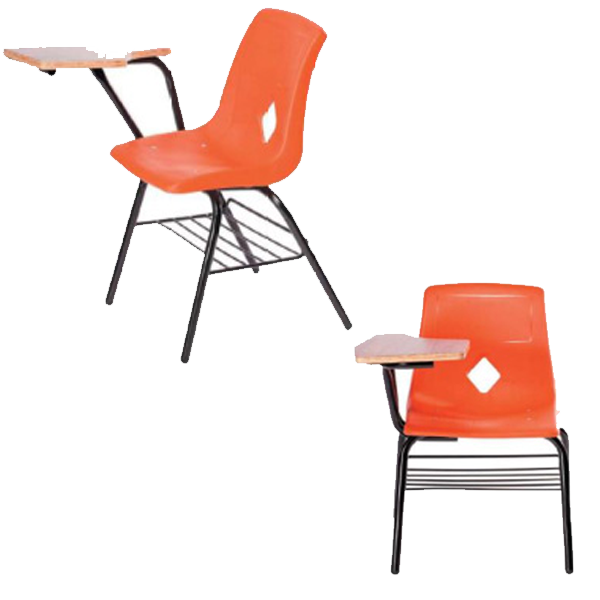 Estructura tubular redondo de 1" Calibre 18. Parrilla portalibros fabricada en redondo macizo de ¼”. Regatón de polipropileno antiderrapante ensamble a presión pegado a la estructura con adhesivos. Asiento y respaldo integrados en una concha de polipropileno de alta densidad. Acabado en pintura micropulverizada color negro. Diferentes colores.