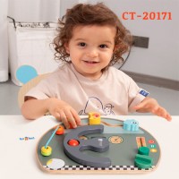 Medida 29 x 24.5 x 6.6 cm . Este tablero con tematica de viajes se combina con laberintos, juegos de cuentas, ruedas, rodillos, espejos, perilla etc. Los niños encontraran innumerable diversion simulando que conducen cuando se encuentren al volante.