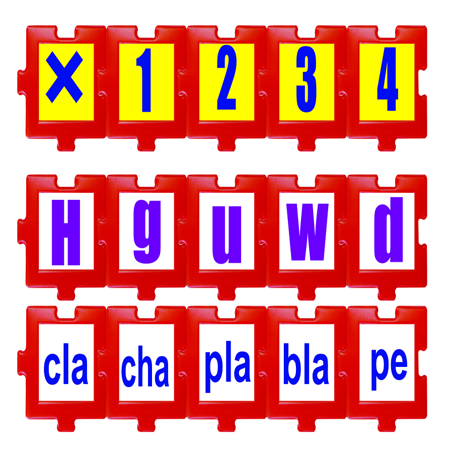 Novedoso material que redefine los tradicionales tableros didácticos para multiplicar y sumar así como para formar palabras, haciéndolos mas amables y divertidos. Tamaño 8 x 8 cms. 66 piezas, 2 caras