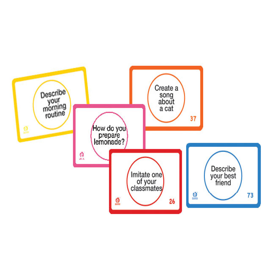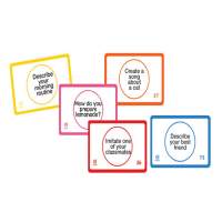 Divertido juego para desarrollar la expresión oral, la imaginación y la comunicación diviértete narrando y describiendo historias, aprendiendo a seguir instrucciones, haciendo mímica, creando canciones o historias y actuando tapete para colarse en el piso de 2 x 3 mts para 12 jugadores, 80 tarjetas de 12 x 8 cms y un dado de 10 cms