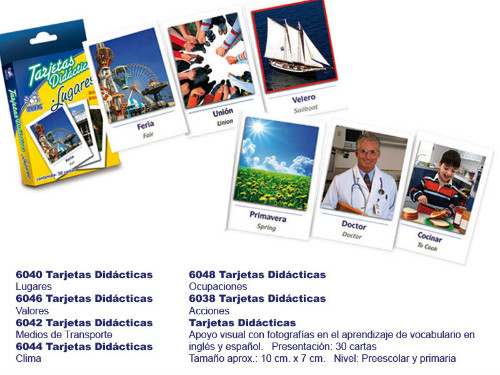 Apoyo visual con fotografías en el aprendizaje de vocabulario en ingles y español, Presentación: 30 cartas Tamaño Aprox. 10 x 7 cm nivel preescolar y primaria.