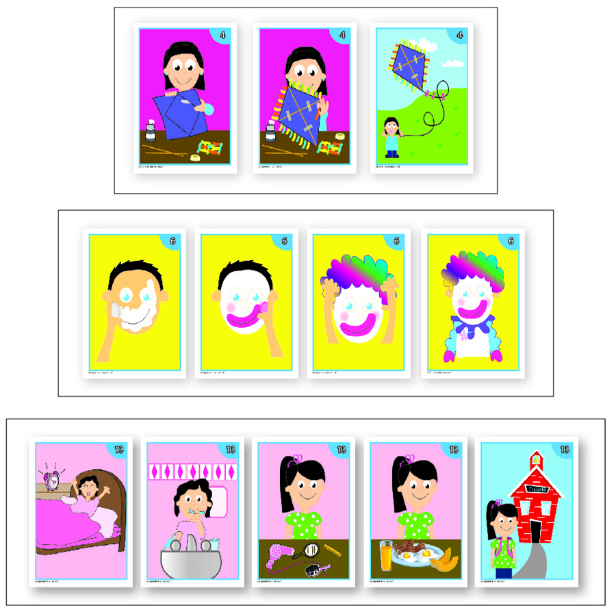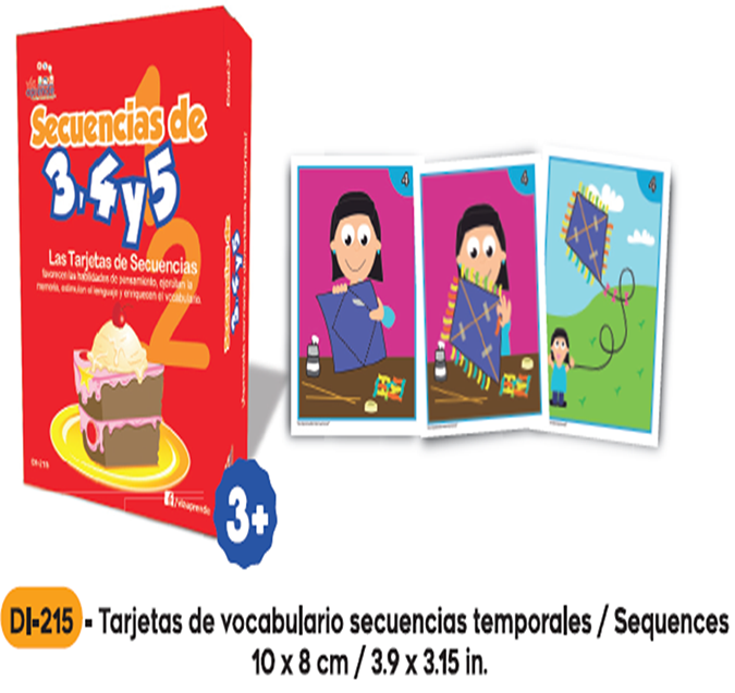 Las tarjetas de secuencias temporales ayudan a desarrollar las capacidades de observación y discriminación visual, además de impulsar el lenguaje y el vocabulario. Incluye: 50 tarjetas en juegos de 3, 4 y 5 etapas.