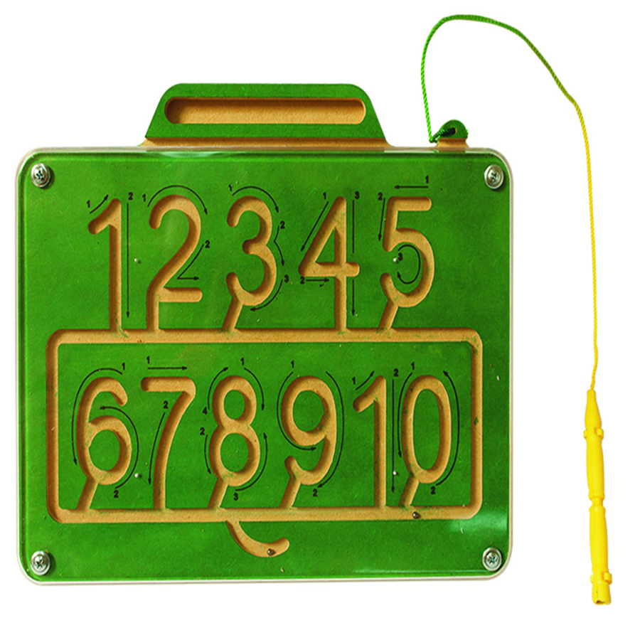 Juego de destreza que permite al niño ejercitar el trazo de las letras , guiando el balín con un lápiz magnético por el laberinto de las letras hasta completar el trazo. este juego desarrolla la psicomotricidad fina , la coordinación ojo-mano y la concentración. Tamaño Aprox.: 29 x 24 cm"