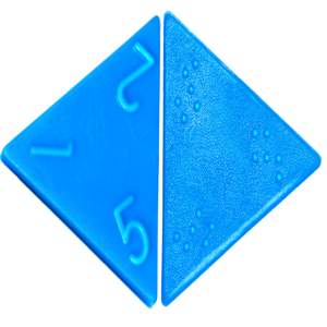 Ayuda en el aprendizaje de las geometrías tomando en cuenta el área plana con alto relieve en la numeración Braille para fomentar el juego con personas discapacitadas visualmente Presentación: 56 piezas Tamaño Aprox.: 3.6 cm