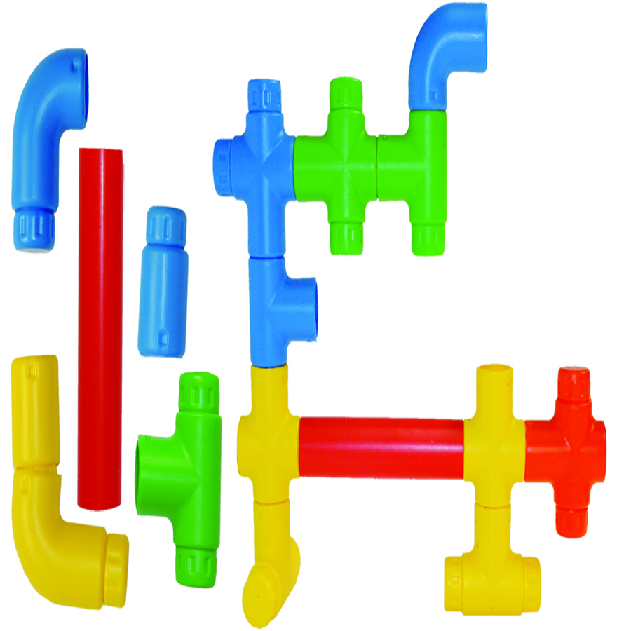 Semejante al juego de plomero, ahora con tubos extensores Presentación: charola de plástico con 70 piezas Tamaño Aprox. tubos de 20 x 3 cm y conectores de 6 x 9 cm nivel preescolar y primaria