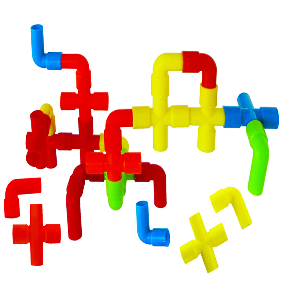 Semejante a uniones de tuberías para un plomero, permite realizar geometrías libres a la imaginación, reforzando el concepto de color, ayudando a la psicomotricidad fina Presentación: charola con 60 piezas Tamaño Aprox. 5 x 5 y 4 x 4 cm nivel preescolar y primaria.