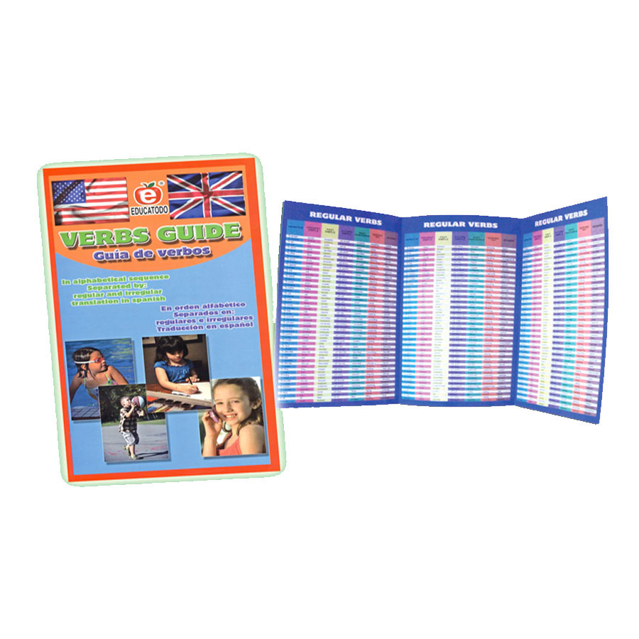 Guía de verbos irregulares y regulares en ingles y español de 28 x 14 cm plastificado por ambos lados.